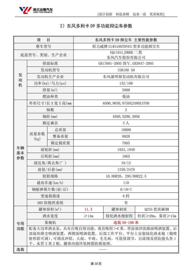 10-12噸方罐50-80米東風(fēng)大多利卡抑塵車